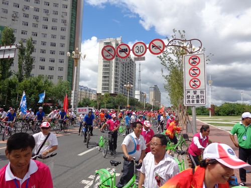 全國第21界騎游健身文化展示大會在黑河于7月26日隆重召開。參加人員來自全國各地,近1200人。此次大會以“綠色出行、低碳生活”為主題開展。