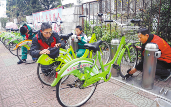 西苑社區(qū)附近設(shè)有近10個公共自行車借車點,約有600多輛公共自行車,整日風吹日曬。兩個月前,孫超發(fā)現(xiàn)后,買來一個塑料桶,每逢周六周日便到借車點擦車,并維修損壞的公共自行車。