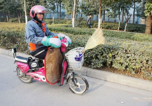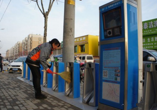 清晨6時(shí)50分,夜色還未褪去,一輛小型電動(dòng)車緩緩駛向阜師院新校區(qū)公共自行車站點(diǎn),騎車的人是阜陽市公共自行車管理中心的巡檢員李莉,今年38歲。她的主要工作,是每天奔波于雙清路、二道河路、清河西路三條路段14個(gè)站點(diǎn),因此電動(dòng)車成了她最快捷的交通工具,車筐里還放置著一塊抹布、一罐水桶和一把小笤帚?!把矙z員的工作就是每天檢查站點(diǎn)的車輛、設(shè)備和保潔,并配合完成調(diào)度工作”。與記者簡(jiǎn)單地認(rèn)識(shí)后,李莉開始了一天的工作。