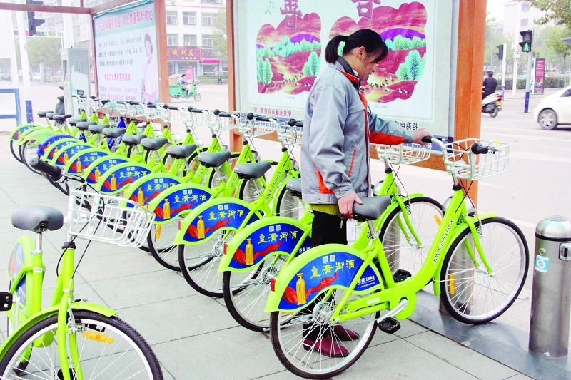 近日,我市第三期公共自行車安裝調試完畢,部分已經上樁,開始為廣大市民提供服務。圖為11月12日,市公共自行車信息管理中心工作人員在為第三期公共自行車上樁。