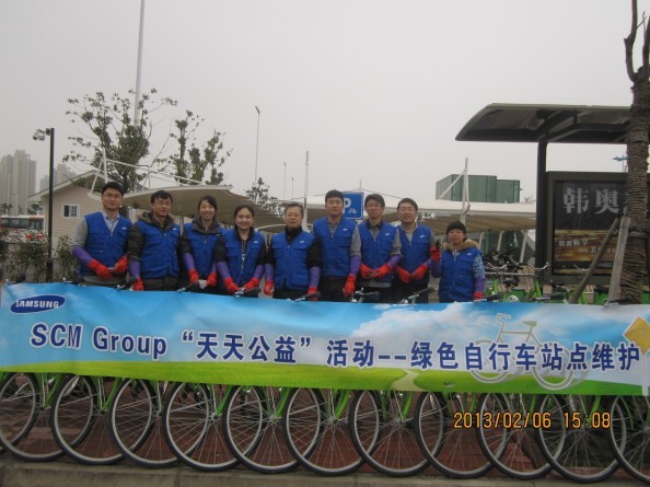 在活動(dòng)現(xiàn)場(chǎng)有些自行車需要調(diào)整零件的,懂自行車維護(hù)的同志就自告奮勇的站出來(lái)?yè)?dān)當(dāng)這個(gè)任務(wù),有些自行車需要清潔工作的,就拿起抹布認(rèn)真仔細(xì)地擦試,不一會(huì)兒工夫一個(gè)又一個(gè)站點(diǎn)在他們熟練的動(dòng)作中形成一道道美麗的風(fēng)景線。三星顯示器有限公司率先從自身做起,將環(huán)保理念深入員工帶動(dòng)市民,以實(shí)際行動(dòng)支持環(huán)保事業(yè)。