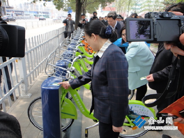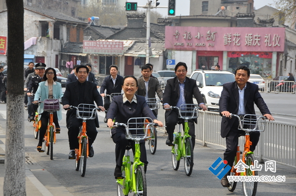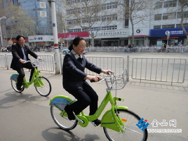 金山網(wǎng)訊 “在路上騎自行車,感覺很舒服!”昨天上午,市長朱曉明騎著公共自行車,在解放路上騎行一段下車后對記者說。隨著朱曉明、雷志強等市領(lǐng)導騎車上路,第一批1000輛公共自行車開始為市民服務(wù)。