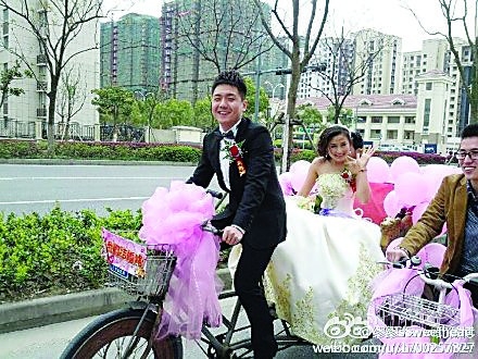 ssweetheart”因?yàn)橐粡埢槎Y圖片,在微博上引起“圍觀”,原因不僅是新郎新娘的婚車用上了三輪車,而且連送親的隊(duì)伍每人都騎上了公共自行車。這場(chǎng)綠色、低碳、環(huán)保的婚禮被很多網(wǎng)友和市民津津樂道,公共自行車的這一“新用途”也成為焦點(diǎn)。
